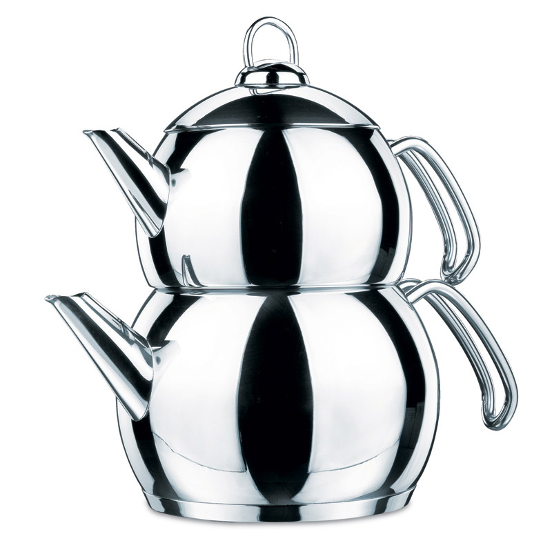 Tombik çaydanlık takımı ergonomik, el yakmayan paslanmaz çelik sapları ile